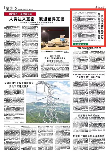 貴州日報:貴大學生團隊成功研發高性能地震勘探救援機器人